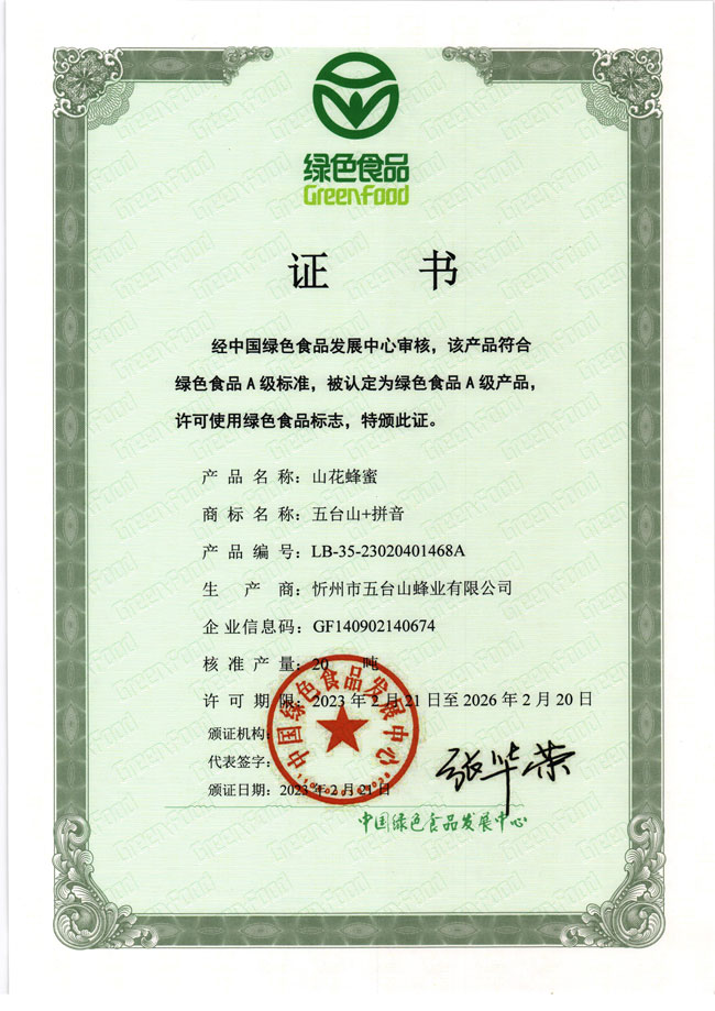 五臺山蜂業(yè)喜獲兩項綠色食品認(rèn)證
